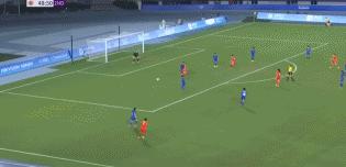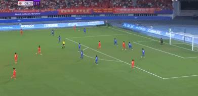 第74分鐘,張馨禁區外圍右腳怒射,皮球擊中左立柱彈出。