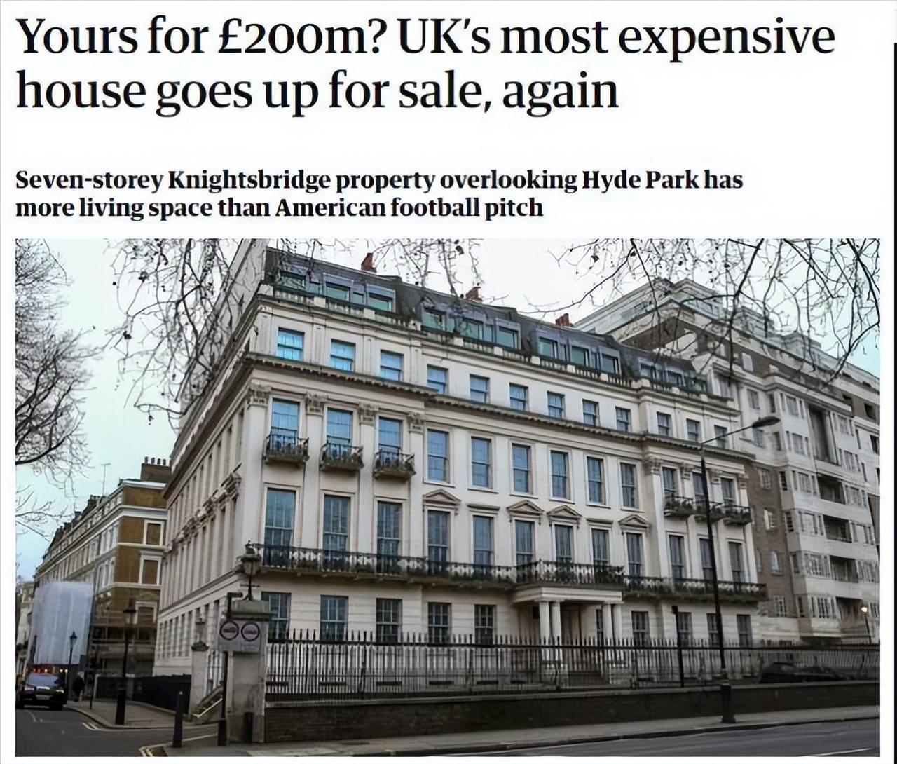 據《金融時報》報道,身處困境的恆大老闆許家印近期正掛牌出售他的倫敦豪宅。豪宅的收購時間在2020年1月,收購價格達到2.1億英鎊,按當時的匯率折算,約爲人民幣20億元,創下英國最貴單棟住宅房產交易記錄。據介紹,該豪宅佔地約5782平方米,比美式足球場的空間還要大,位於肯辛頓花園南邊,可俯瞰海德公園,可謂黃金地段。有7層樓45間臥室,內部有游泳池、地下停車場、數部電梯和大量金箔裝飾,116扇窗戶(可防彈)中有68扇可以看到花園的景緻。豪宅已至少空置10年,此前已獲規劃許可,允許進行改建。