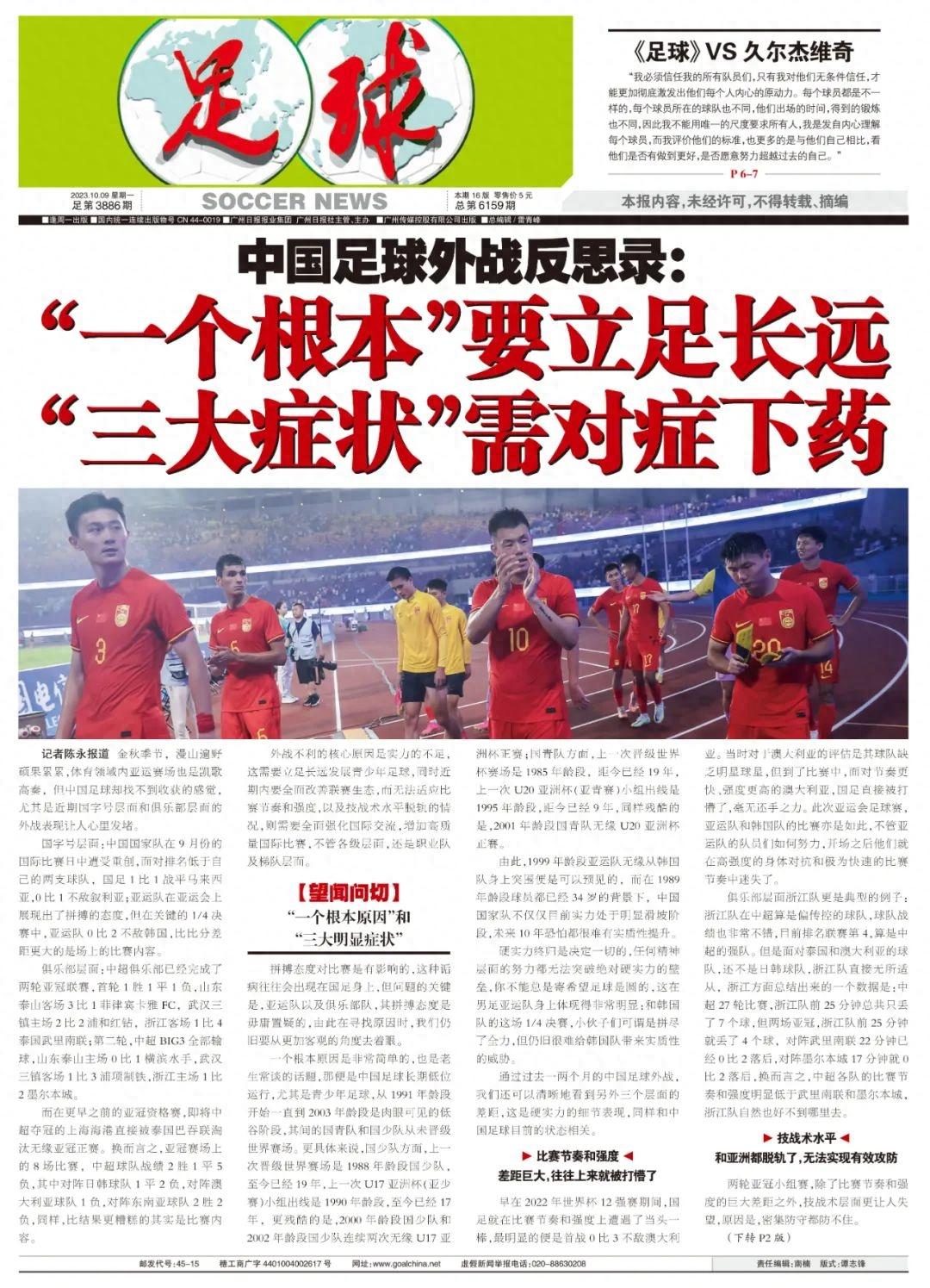 國字號層面:中國國家隊在9月份的國際比賽日中遭受重創,面對排名低於自己的兩支球隊,國足1比1戰平馬來西亞,0比1不敵敘利亞;亞運隊在亞運會上展現出了拼搏的態度,但在關鍵的1/4決賽中,亞運隊0比2不敵韓國,比比分差距更大的是場上的比賽內容。
