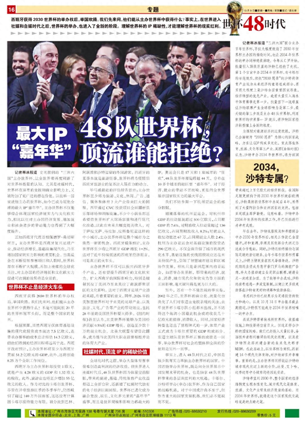 記者寒冰報道 史無前例的“三洲六國”主辦世界盃,讓全世界都再度刷新了對世界盃能量的認知。尤其是社媒時代,世界盃在原有的競技和商業影響力上,又被附加了更廣泛的潛在價值。以往單一國家就能主辦的世界盃,如今已成爲冠絕全球的最大IP“嘉年華”。主辦世界盃不僅能夠綜合體現國家經濟硬實力與文化軟實力,相比以往對主辦國經濟發展、增加就業和社會進步的帶動能力也得到了大幅度提升。