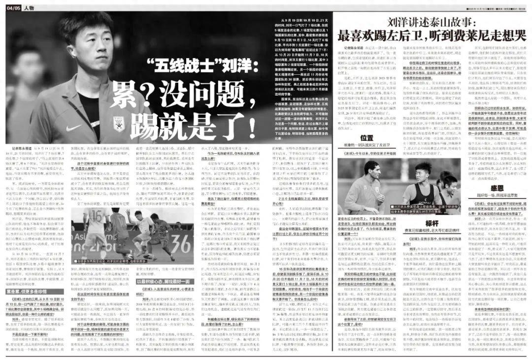 採訪中,劉洋講起了他在泰山隊的故事,包括他對自己位置的認識,也講述了他的隊友們。