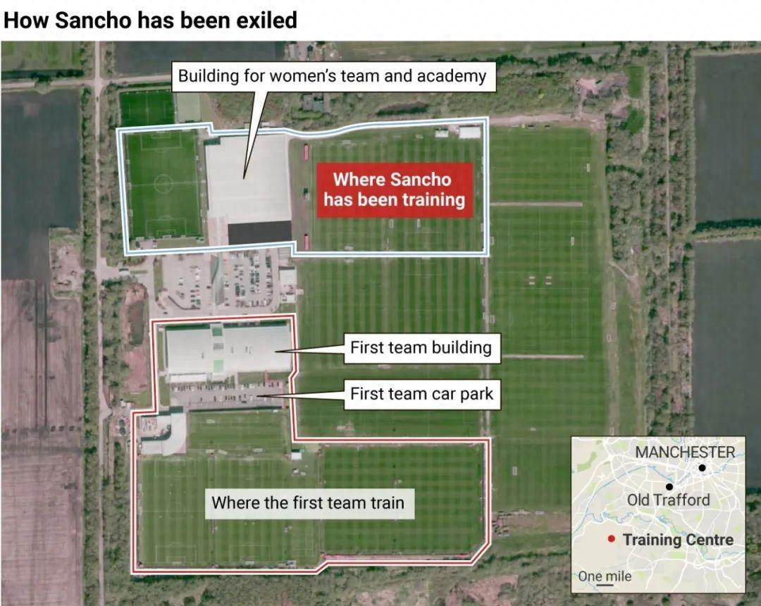 記者寒冰報道 10月17日,曼聯正式啓用造價700萬鎊的全新訓練中心,專供曼聯女足和青訓梯隊使用。球隊上下盡歡顏,但更受英媒關注的,卻是一位本不該出現在青訓基地的面孔——他就是曼聯耗資8500萬歐元簽下,週薪高達35萬鎊的桑喬。拒不道歉的英格蘭新星,已被主帥滕哈赫放逐到青訓梯隊長達6周半,看不到重返一線隊的希望。