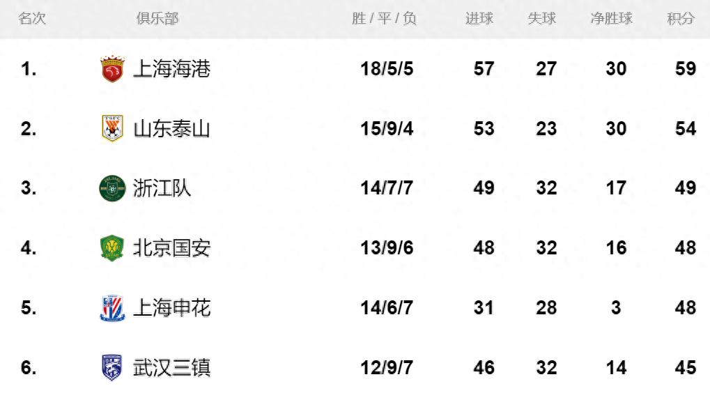 拿下亞泰後,泰山亞軍的位置更穩了,而在晚上,國安客場2比1擊敗海港,似乎給了泰山爭奪冠軍的“勇氣”。