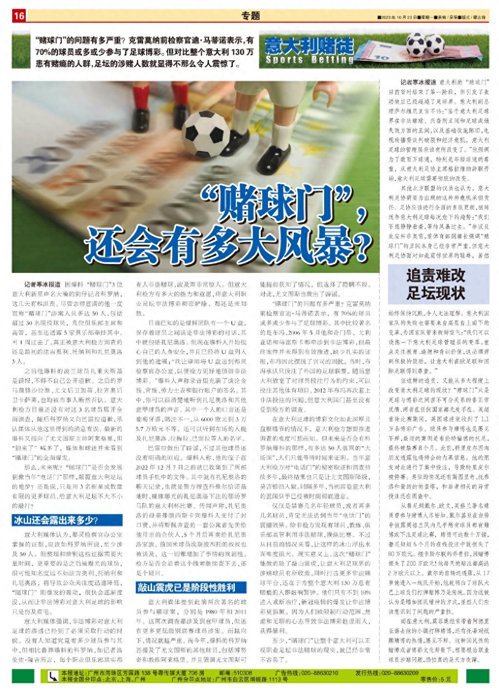 至少,“賭球門”讓整個意大利可以正視職業足壇非法賭球的現實,就已經非常不容易了。