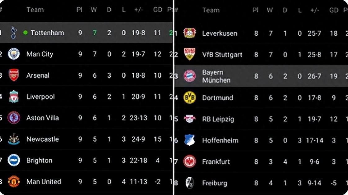 在熱刺反超曼城登上英超榜首位置後,哈里-凱恩就有點尷尬了。爲了拿到俱樂部首冠,這位英格蘭隊長離開了英格蘭,飛往德國加盟了拜仁。雖然凱恩在德甲的表現也無可挑剔,但他所在的拜仁目前卻只排在了德甲第3。由於阿隆索執教的勒沃庫森本賽季表現強勢,說不定他們真的能推翻拜仁近11年對德甲冠軍的壟斷。