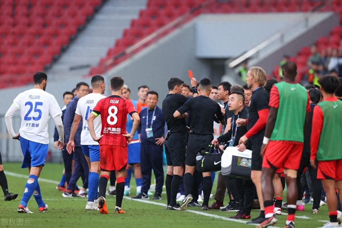 北京時間10月29日15點30分進行的中超第29輪焦點大戰上海海港同山東泰山的比賽中,上半場雙方火藥味十足,上半場主裁判出示四張紅牌。分別是海港隊的呂文君兩黃變一紅、蔡慧康及主教練哈維爾被出示紅牌,山東泰山方面則是莫伊塞斯被紅牌罰下。