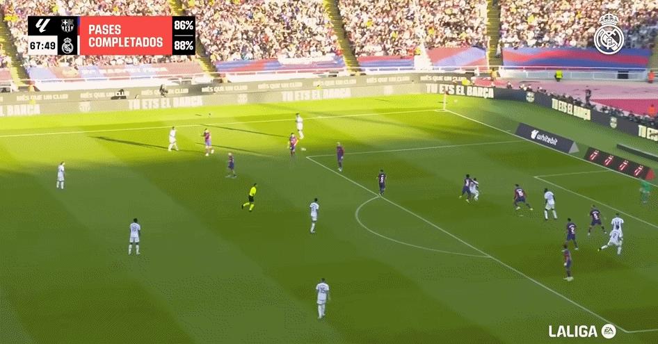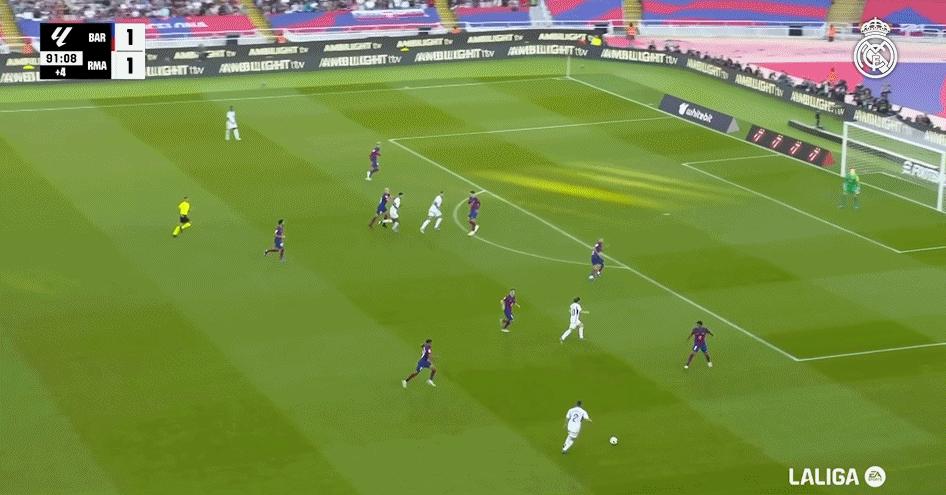 然而,缺少5名主力的巴薩1.5隊,至少在3/4的時間內非常“滾石”:高位逼搶、高效傳控,具有拉馬西亞的典型風格。如果不是費爾明、馬丁內斯和阿勞霍運氣欠佳,比賽早就終結了。正如賽後哈維所言,原本應該取勝的是大部分時間碾壓皇馬的巴薩。前場高壓快打的巴薩充分展示了自己的實力,導致皇馬居然上半場零射正,幾乎全員低迷。安切洛蒂經過中場休息的更衣室“吹風機”,以及下半場的換人,最終還是依靠貝林厄姆的個人能力完成逆轉。