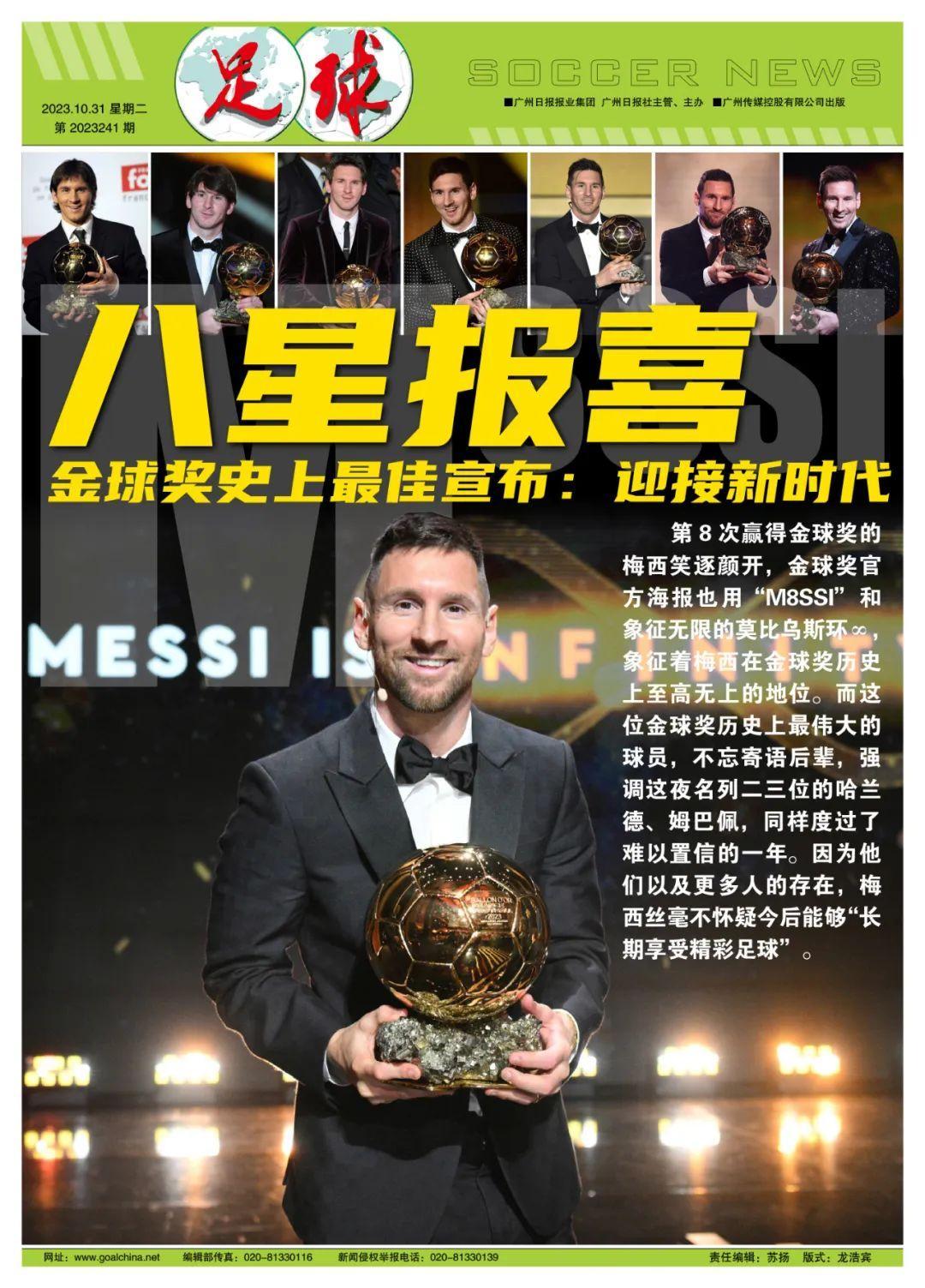 因爲去年底卡塔爾世界盃的出色表現,梅西毫無懸念地獲得了第8座金球獎。在金球獎歷史上將領先優勢擴大到了3個,不僅完全奠定了金球獎視角下的GOAT(史上最偉大球員)地位,也爲屬於他的這個時代畫上了圓滿的句號。