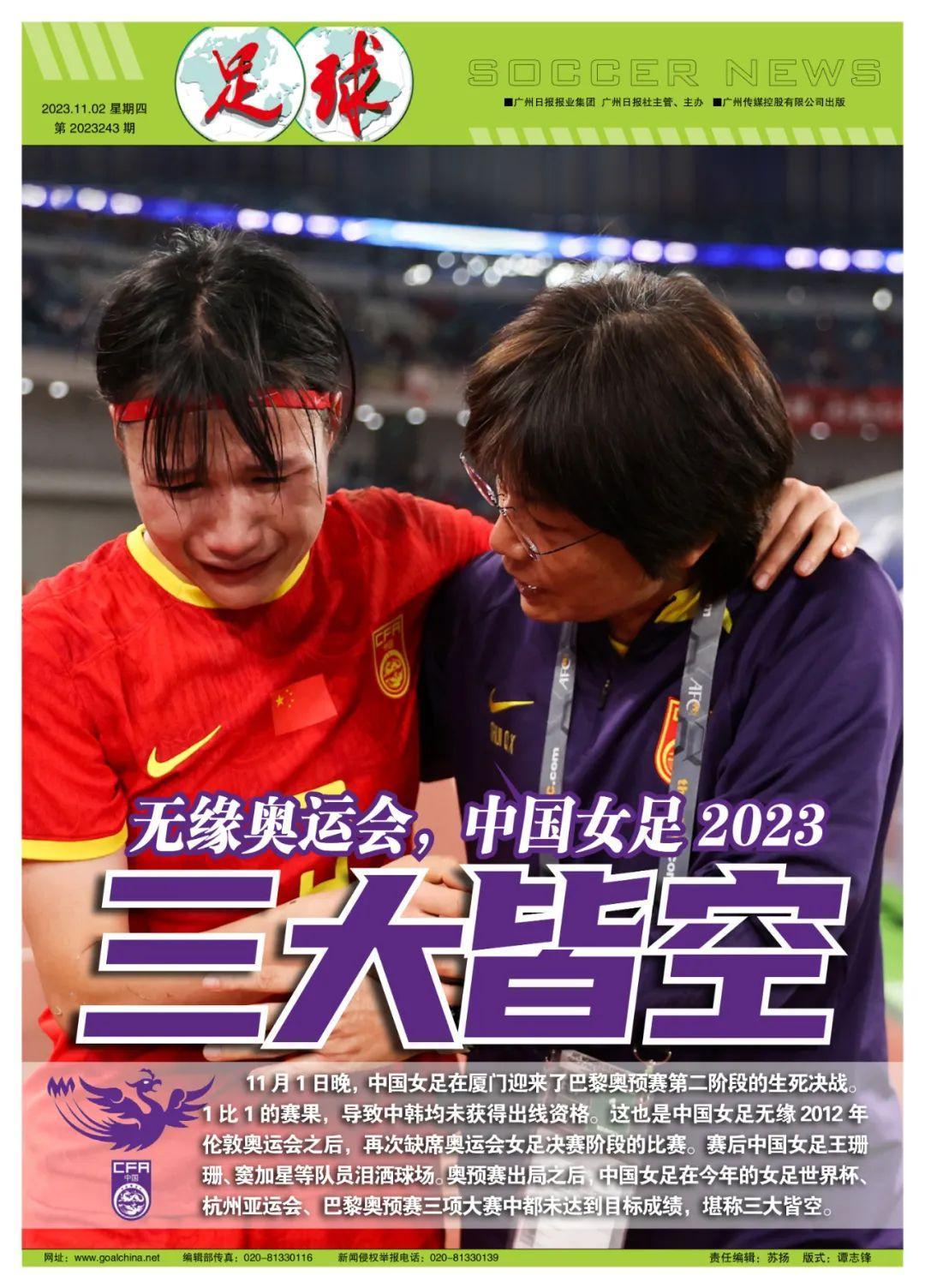 記者王偉報道 11月1日晚,中國女足在廈門迎來了巴黎奧預賽第二階段的生死決戰。1比1的賽果,導致中韓均未獲得出線資格。這也是中國女足無緣2012年倫敦奧運會之後,再次缺席奧運會女足決賽階段的比賽。賽後中國女足王珊珊、竇加星等隊員淚灑球場。無緣巴黎奧運會,中國女足在2023的女足世界盃、杭州亞運會、巴黎奧預賽三項大賽中都未達到目標成績,堪稱三大皆空。