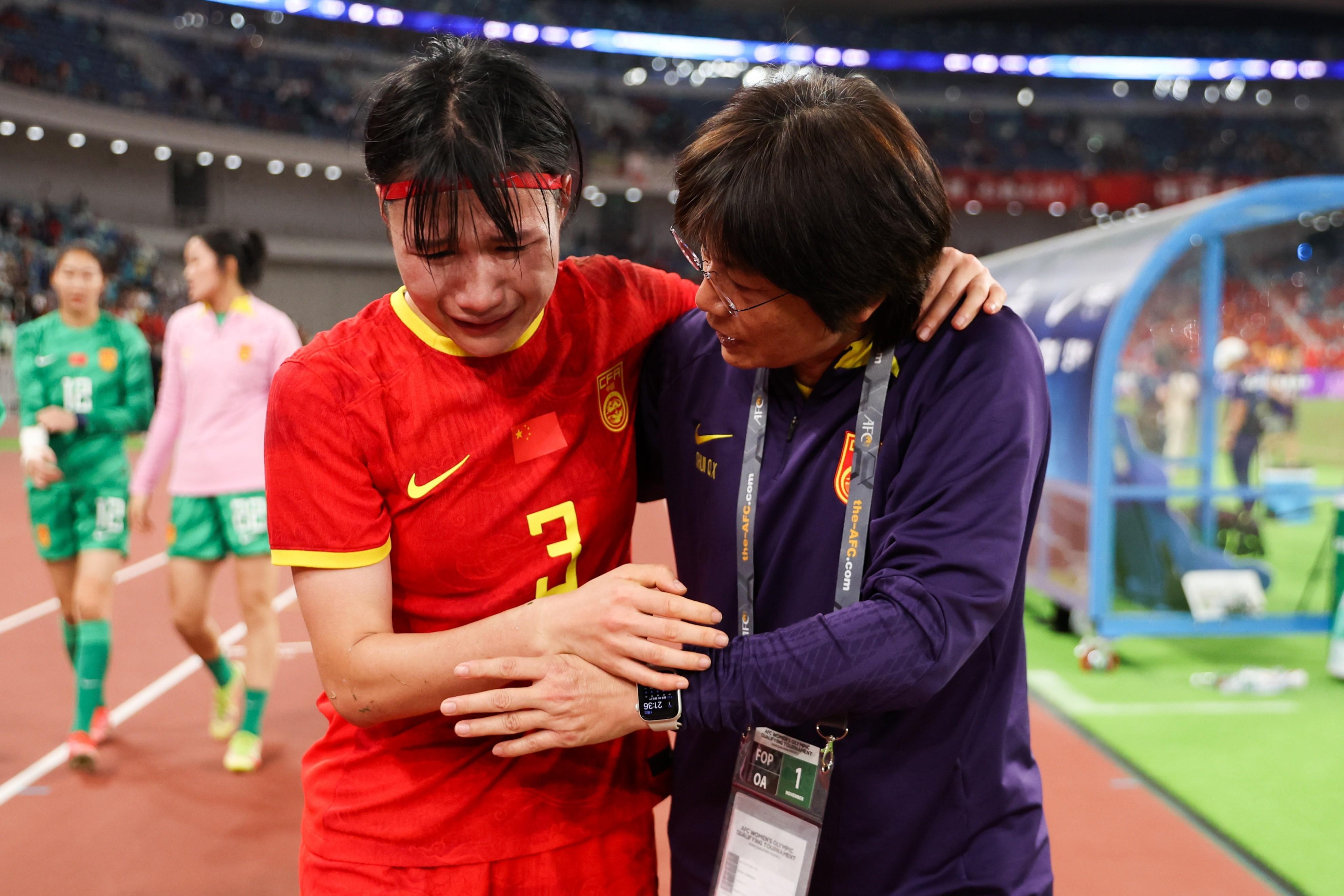 中國女足在世界盃、亞運會、巴黎奧預賽三大皆空,讓女足姑娘們非常難過,賽後水慶霞和每一個隊員進行了擁抱。中國女足隊長王珊珊則淚灑賽場,“今天比賽其實我們打得挺好的,未來希望更多的年輕人能起來,把中國女足精神發揚光大,永不放棄。”