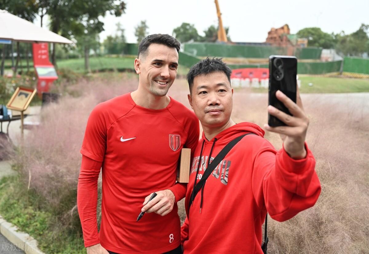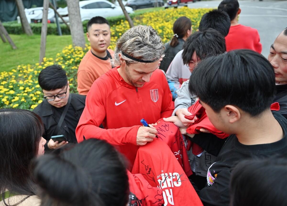 成都蓉城備戰“收官戰”,訓練後隊員與球迷簽名合影