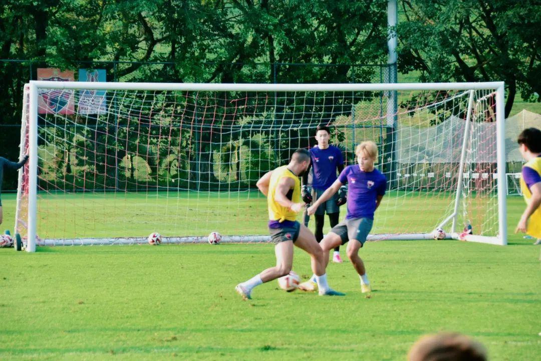 球員們很認真,按照教練安排,一板一眼;亞歷山德里尼參加了分組對抗訓練,不時在休息間隙和自己的女兒玩耍;阿奇姆彭雖然只是在健身房獨自保持狀態,但也會偶爾探出頭,看一看隊友的訓練情況。