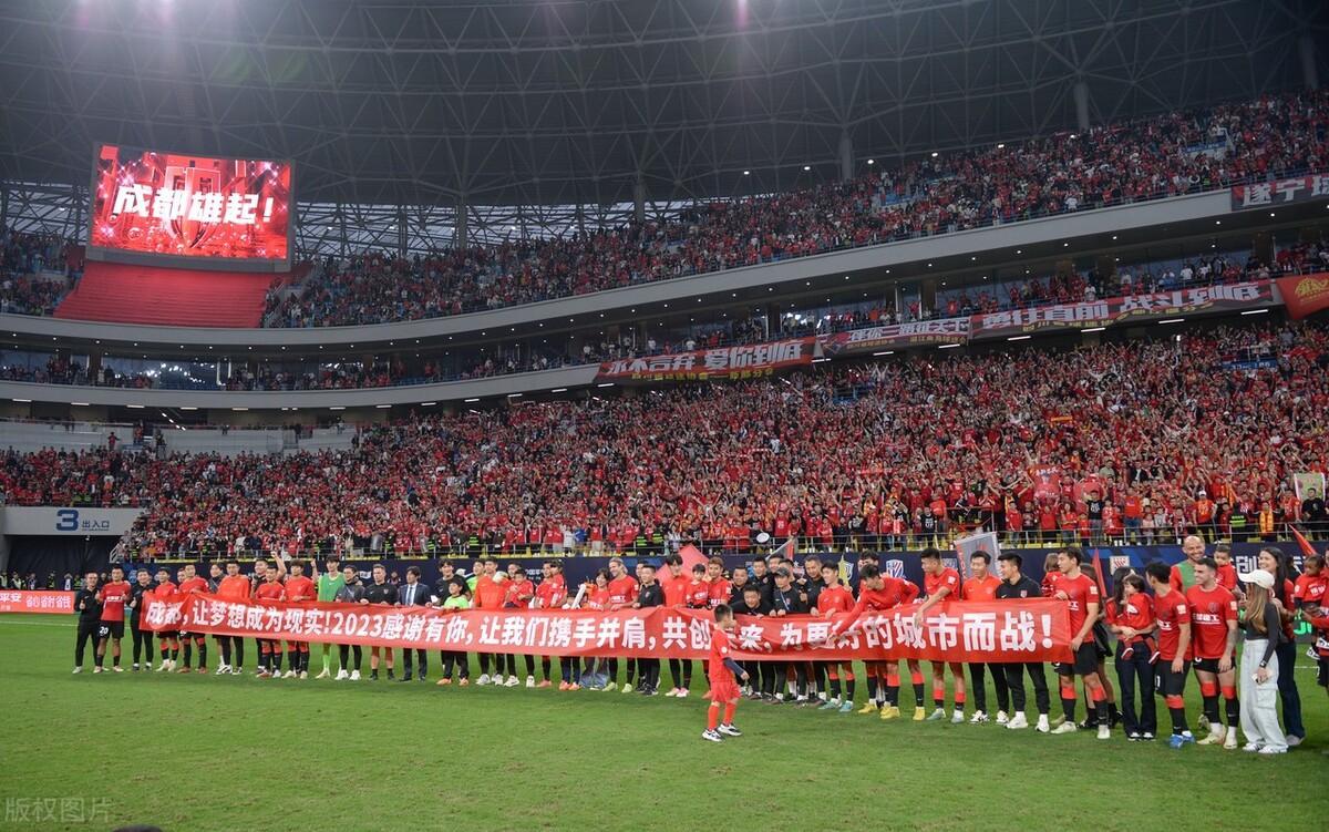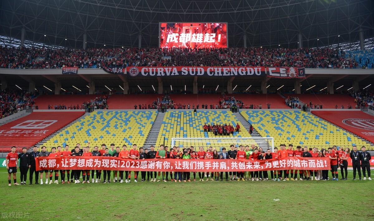 2023賽季中超聯賽落下帷幕,成都蓉城全隊賽後手持橫幅謝場