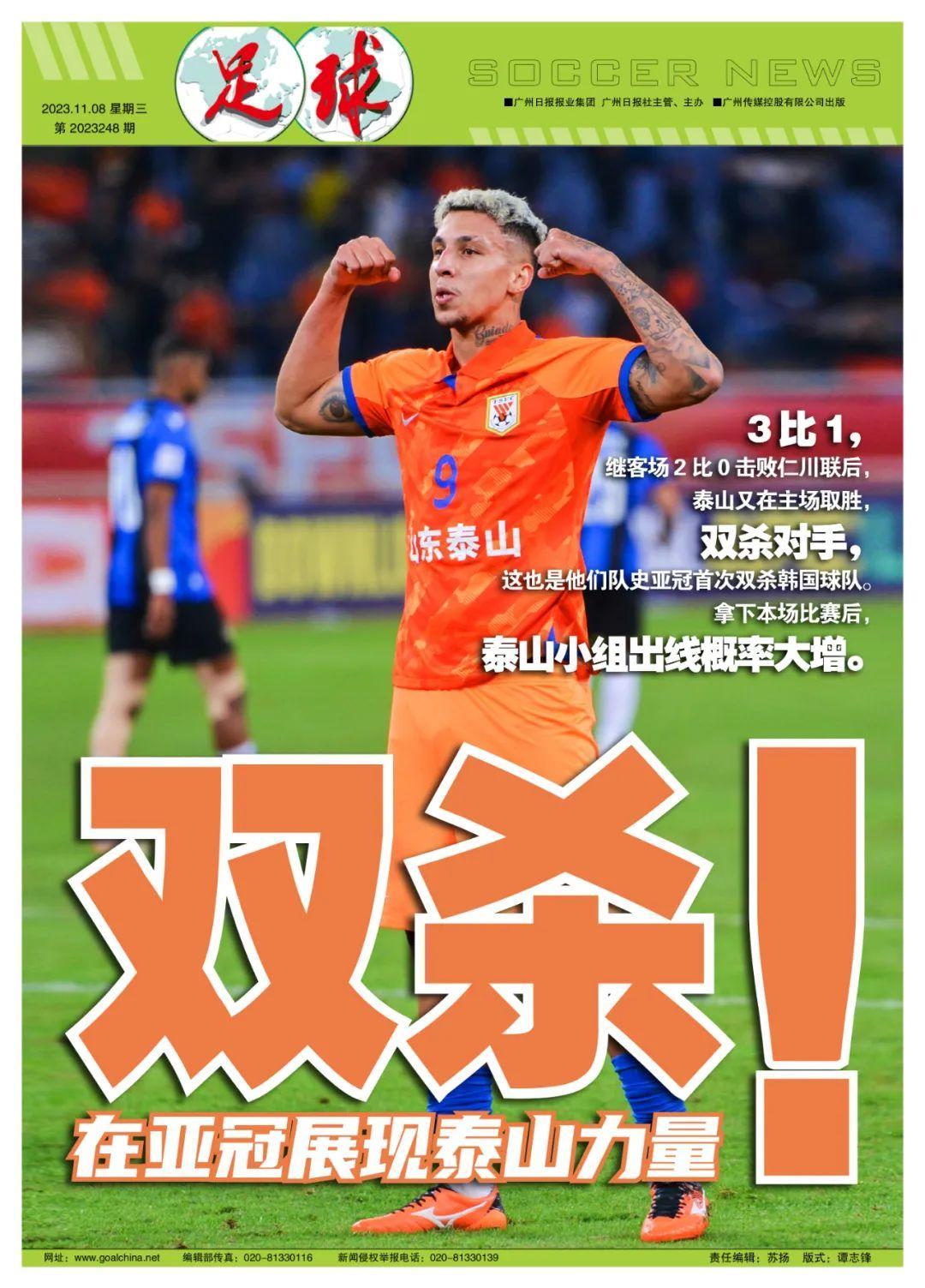 記者陳永報道 3比1,繼客場2比0擊敗仁川聯後,泰山又在主場取勝,雙殺對手,這也是他們隊史亞冠首次雙殺韓國球隊。拿下本場比賽後,泰山小組出線概率大增,即使拿不到小組第一,也極有可能成爲三個最好的小組第二之一。