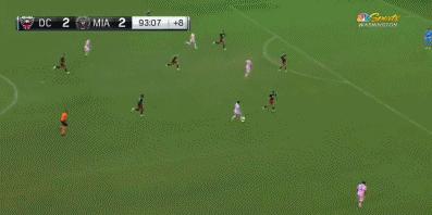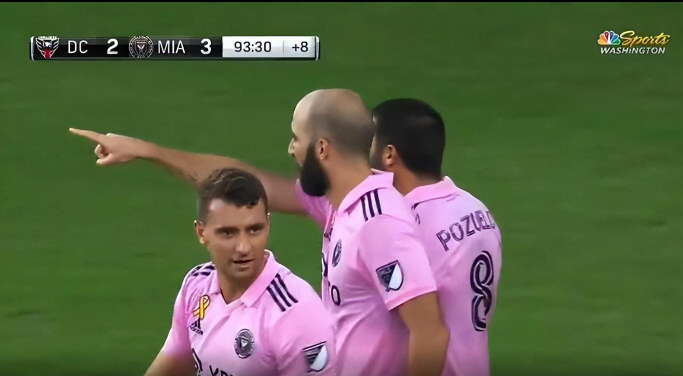 第94分鐘,耶德林右路低平球橫傳,伊瓜因推射近角得手,最終邁阿密國際完成3-2絕殺逆轉。