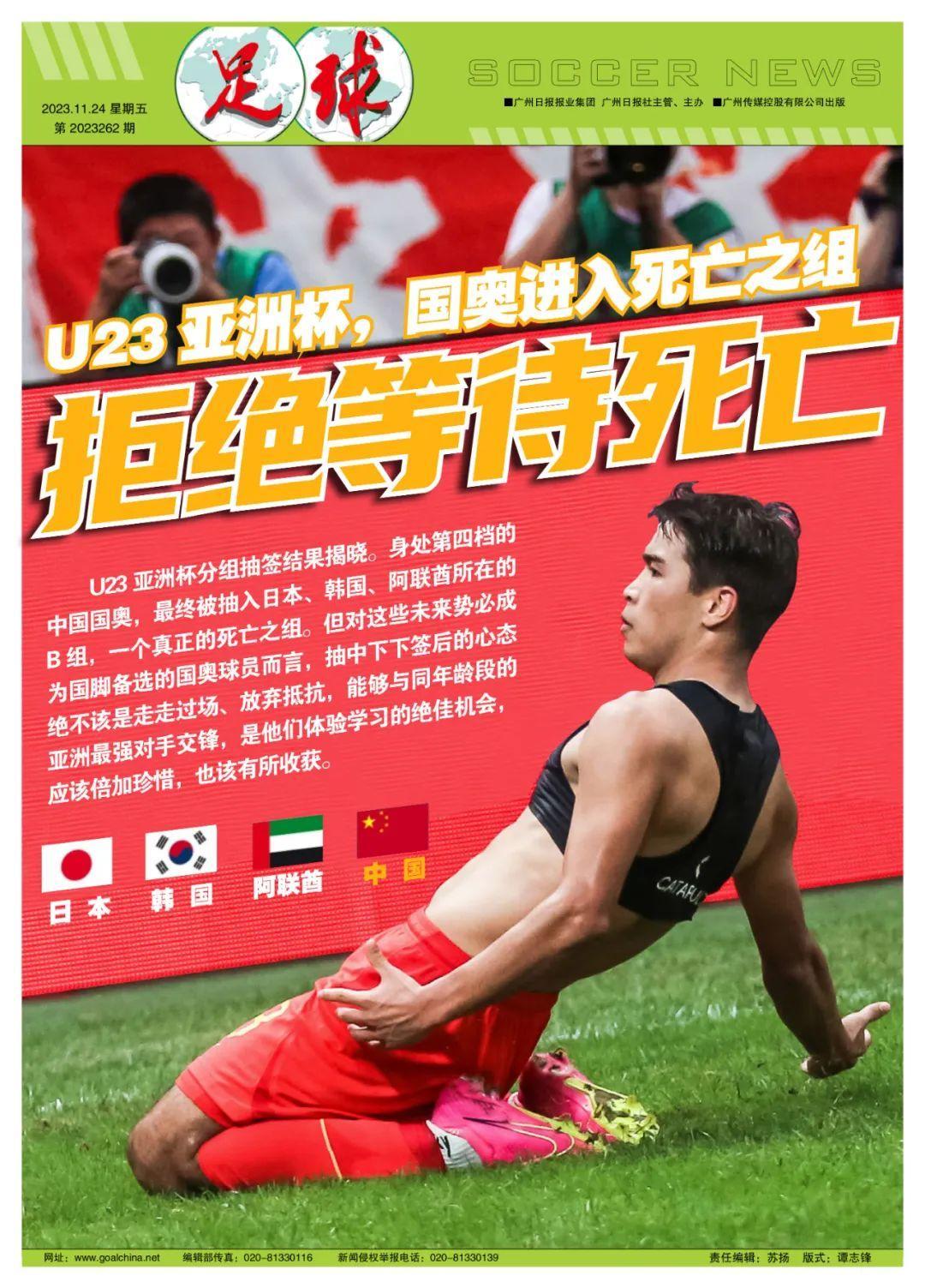 記者魯蜜、寒冰報道 11月23日傍晚,U23亞洲盃分組抽籤結果在卡塔爾多哈揭曉。身處第四檔的中國國奧,最終被抽入日本、韓國、阿聯酋所在的B組,本就不被外界看好的他們,無疑進入了一個真正的死亡之組。但對這些未來勢必成爲國腳備選的國奧球員而言,抽中下下籤後的心態絕不該是走走過場、放棄抵抗,能夠與同年齡段的亞洲最強對手交鋒,是他們體驗學習的絕佳機會,應該倍加珍惜,也該有所收穫。