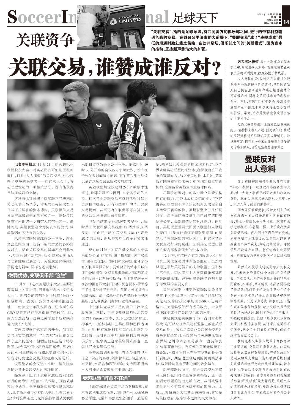 反對臨時禁止關聯租借交易的8傢俱樂部是曼城、切爾西、紐卡斯爾聯、諾丁漢森林、謝菲聯、狼隊、伯恩利和埃弗頓。前4家都有關聯衛星俱樂部,曼城背後的城市足球集團在全球擁有12家衛星俱樂部,切爾西老闆還控股法甲的斯特拉斯堡;紐卡斯爾聯金主在沙特擁有四大豪門,謝菲聯老闆本·穆薩德王子也是沙特王室成員,英國之外還擁有4傢俱樂部。諾丁漢森林老闆希臘船王馬里納基斯,也是希臘豪門奧林匹亞科斯金主。