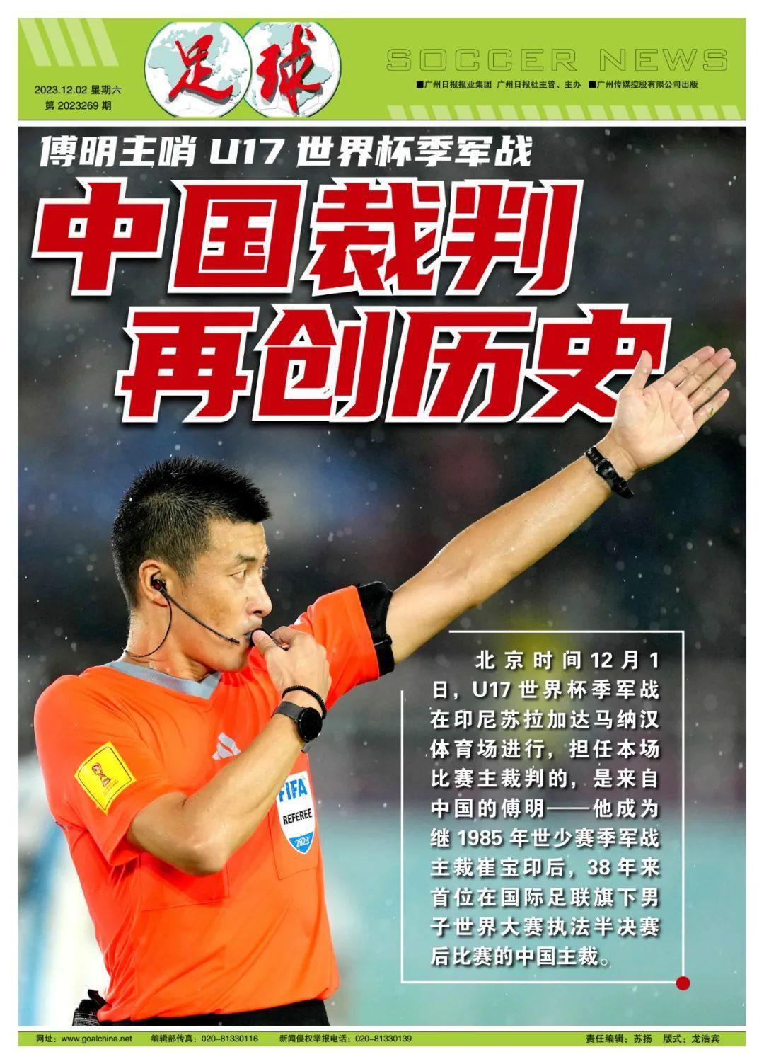 而傅明最終入圍世少賽執法名單,說明那場比賽,對他沒有太大影響,間接爲他正名。而此次執法世少賽季軍戰,也讓傅明成爲38年來,首位在國際足聯男子世界大賽執法半決賽後比賽的中國主裁。