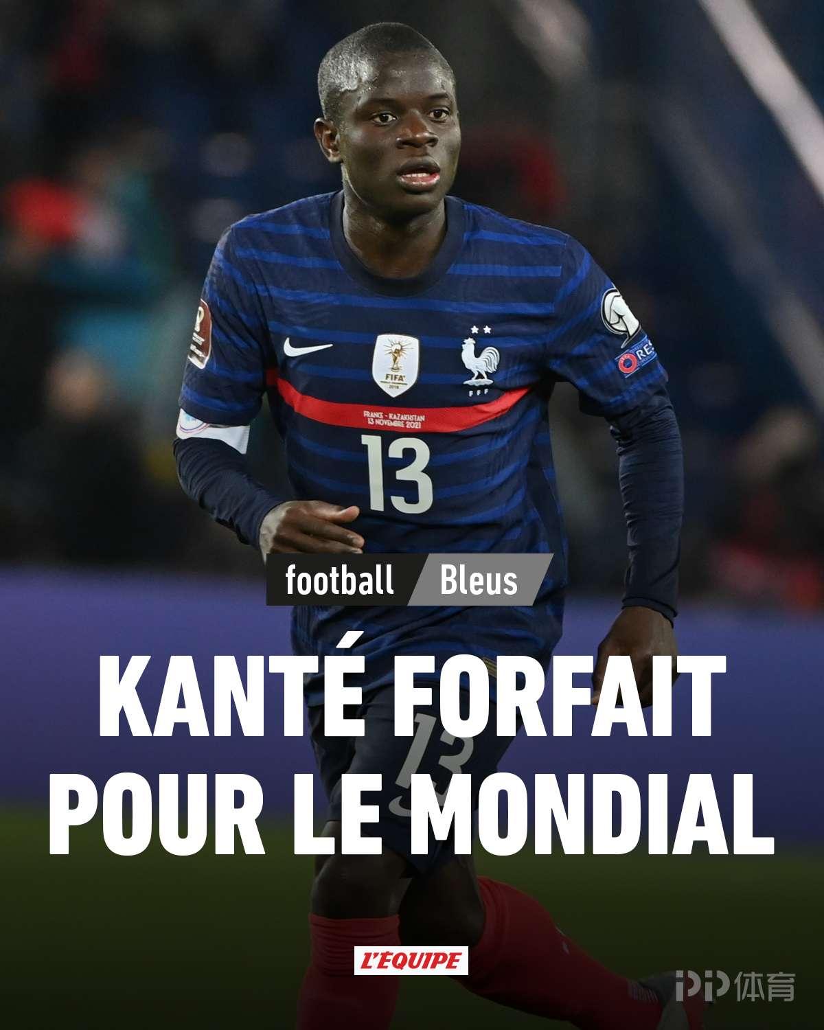 北京時間10月14日,隊報消息稱,坎特因腿筋受傷,將無法趕上卡塔爾世界盃。坎特在8月份切爾西2-2熱刺的比賽中腿筋受傷,但在康復過程中他數次傷病復發。今天早些時候,切爾西主帥波特在賽前發佈會上宣佈,坎特將在週末與一位醫療顧問見面,他的康復過程受到了挫折。德尚將在11月9日公佈法國隊的世界盃參賽名單。
