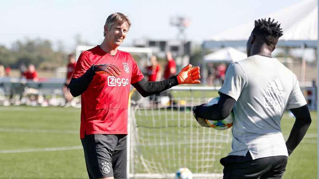 沒有放棄奧納納的不僅有必須支持愛將的滕哈赫,還有奧納納自認爲是“足球教父”的范德薩。范德薩始終支持這位潛力十足的後輩,阿賈克斯時代,他經常在賽後給奧納納提供建議。甚至,訓練中范德薩還親自戴上手套,與奧納納一起訓練。奧納納承認:在阿賈克斯每次他犯錯後,范德薩都會直接到更衣室與他交流,幫助他走出低迷的心情。