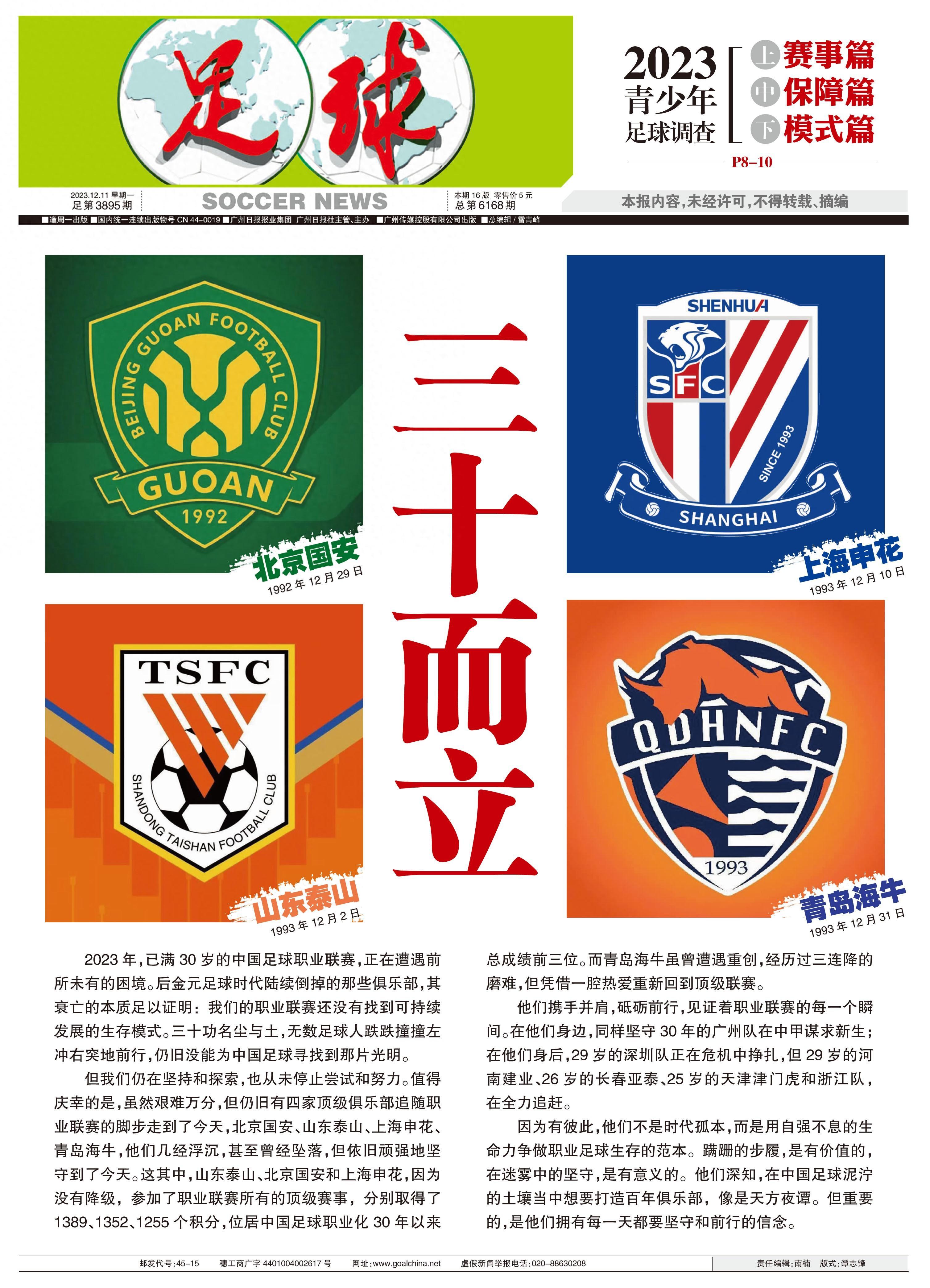 他們攜手並肩,砥礪前行,見證着職業聯賽的每一個瞬間。在他們身邊,同樣堅守30年的廣州隊在中甲謀求新生;在他們身後,29歲的深圳隊正在危機中掙扎,但29歲的河南建業、26歲的長春亞泰、25歲的天津津門虎和浙江隊,在全力追趕。