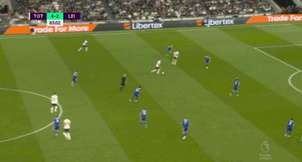 第86分鐘,孫興慜接應霍伊別爾的直塞球,用右腳推射破門,熱刺瞬間把比分從3-2改寫稱6-2。