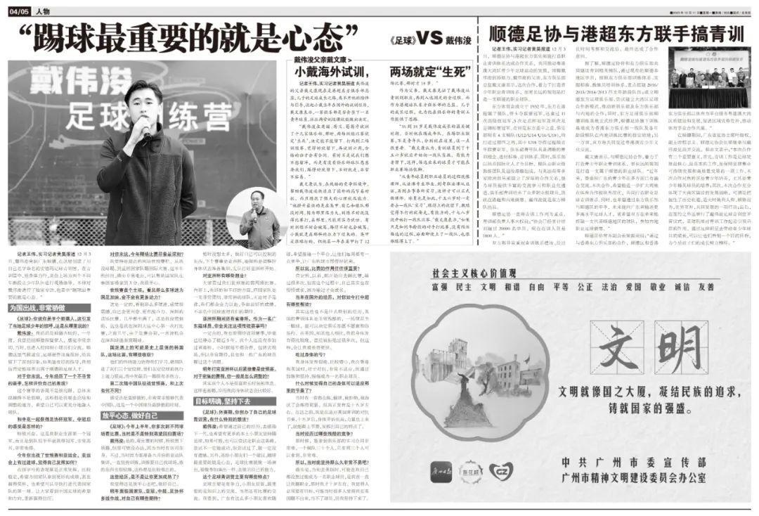 記者王偉、實習記者黃昊報道 12月3日,戴偉浚來到廣東順德,在這裏創建了用自己名字命名的安德瑪足球青訓營,在青訓營中,他身體力行,親自上場爲兩個不同年齡段青少年隊伍進行現場指導,本報對戴偉浚進行了獨家專訪,他表示“踢球最重要的就是心態。”