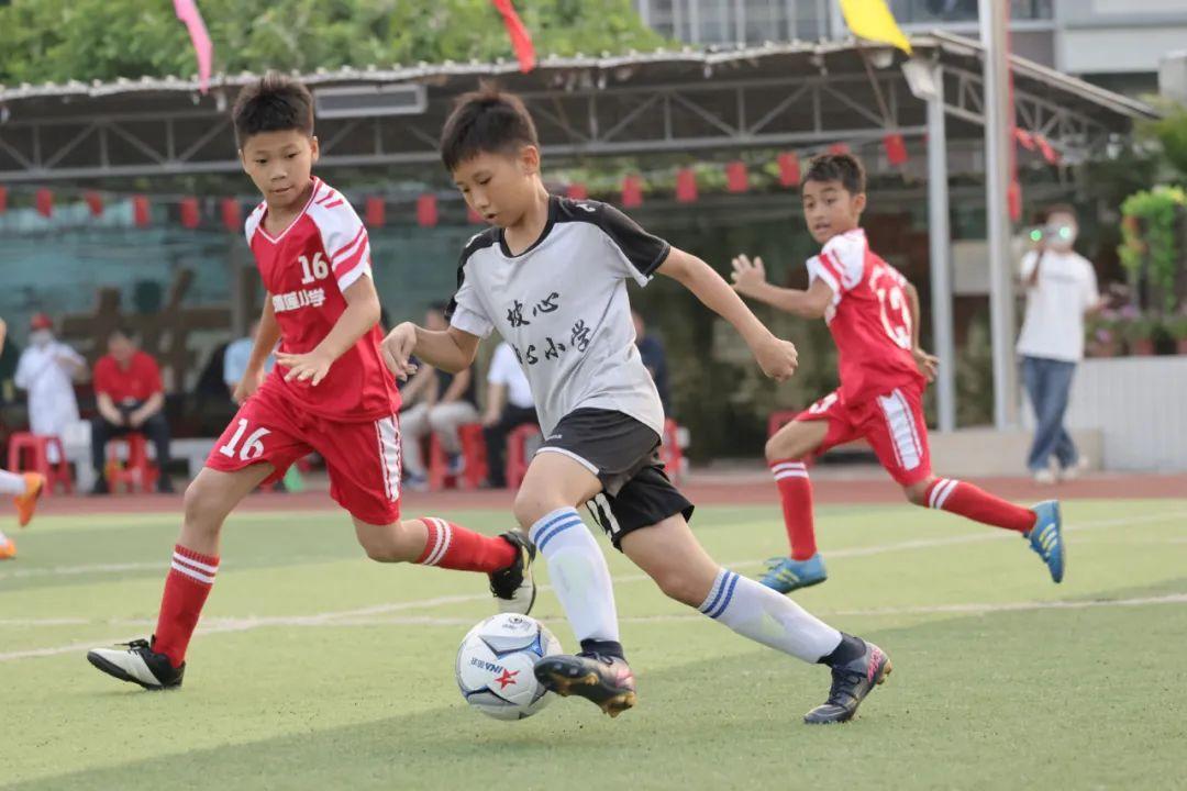 莫智藝把校園足球活動看做是一個平臺,是學生釋放天性、展現自我的平臺,“我們應該把坡心中心小學的校園足球傳承下去,發揚開來。”他說,“學校舉辦校園足球比賽的時候就像廟會一樣,非常熱鬧。我的想法是儘量發動更多的學生來參與校園足球活動,從興趣、從天性出發,在雙減的背景下,釋放學習的壓力,舒緩心理,做好平臺。我相信我們的足球隊伍當中有機會走出幾個未來的將軍、教授、飛行員。”