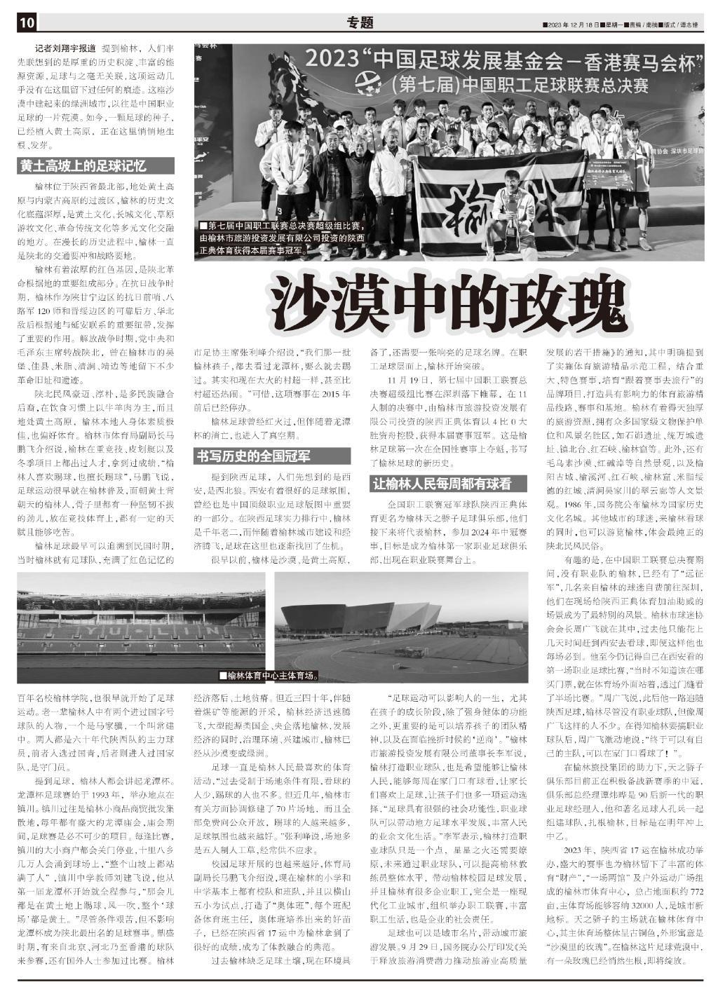 記者劉翔宇報道 提到榆林,人們率先聯想到的是厚重的歷史積澱、豐富的能源資源,足球與之毫無關聯,這項運動幾乎沒有在這裏留下過任何的痕跡。這座沙漠中建起來的綠洲城市,以往是中國職業足球的一片荒漠。如今,一顆足球的種子,已經植入黃土高原,正在這裏悄悄地生根、發芽。
