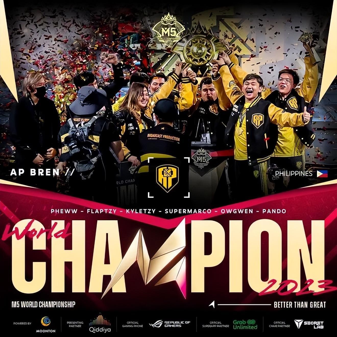 最終,主場作戰的菲律賓戰隊AP Bren以4比3的總比分力克印度尼西亞戰隊ONIC,奪得第五屆MLBB世界總決賽冠軍。