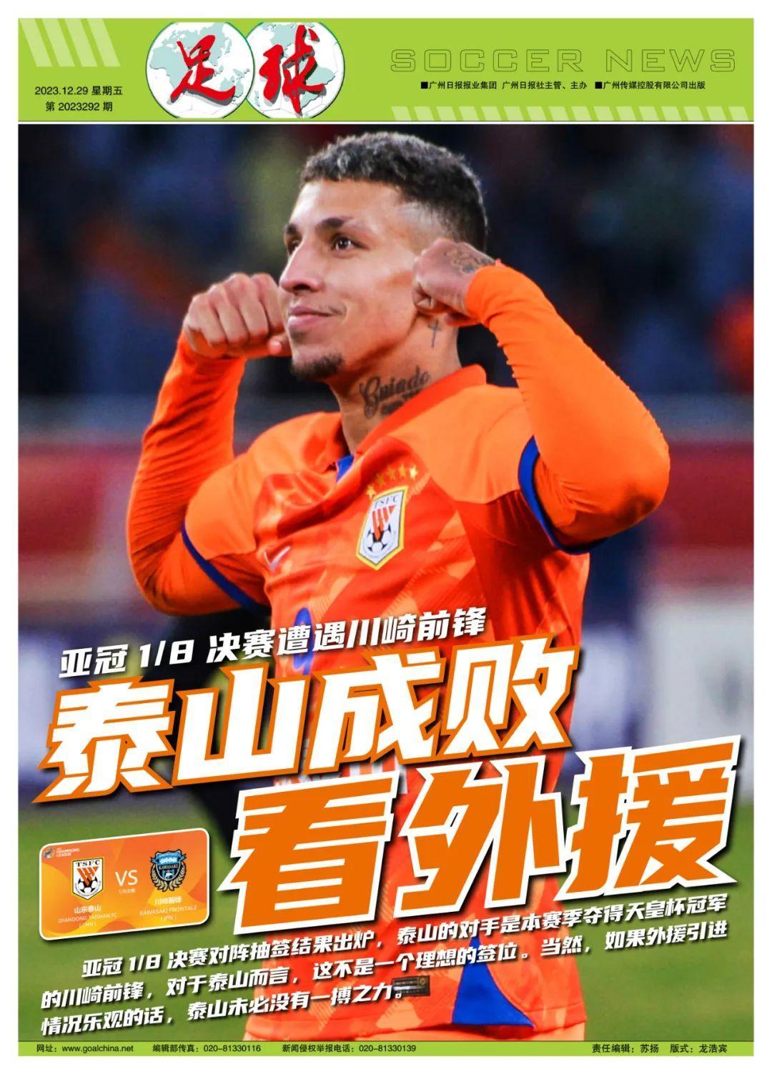 記者陳永、寒冰報道 12月28日,亞冠1/8決賽對陣抽籤結果出爐,泰山的對手是本賽季奪得天皇杯冠軍的川崎前鋒,對於泰山而言,這不是一個理想的籤位,晉級8強無疑難度增大,當然,如果外援引進情況樂觀的話,泰山也有一搏之力。