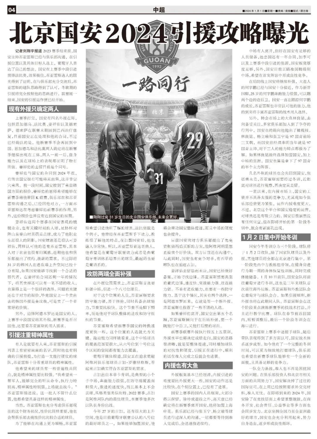 一隊全力備戰,准入也不再是困擾國安的問題。在俱樂部投資人和北京市相關方面的共同努力下,國安解決掉了過往的國際官司,在上週已經按照要求補交完材料,准入無憂。在即將到來的2024年,國安除了在競技層面上希望重整旗鼓,在商務開發、社會責任、公益事業等多方面也會同步發力。北京坐擁全國乃至全亞洲最好的球市,國安也會充分利用起來,努力自身造血,逐步形成良性循環。