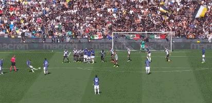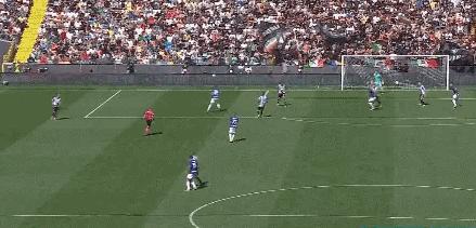 第22分鐘,烏迪內斯開出前場右側定位球,皮球砸在什克里尼亞爾的大腿上飛進自家大門,烏迪內斯扳平1-1。