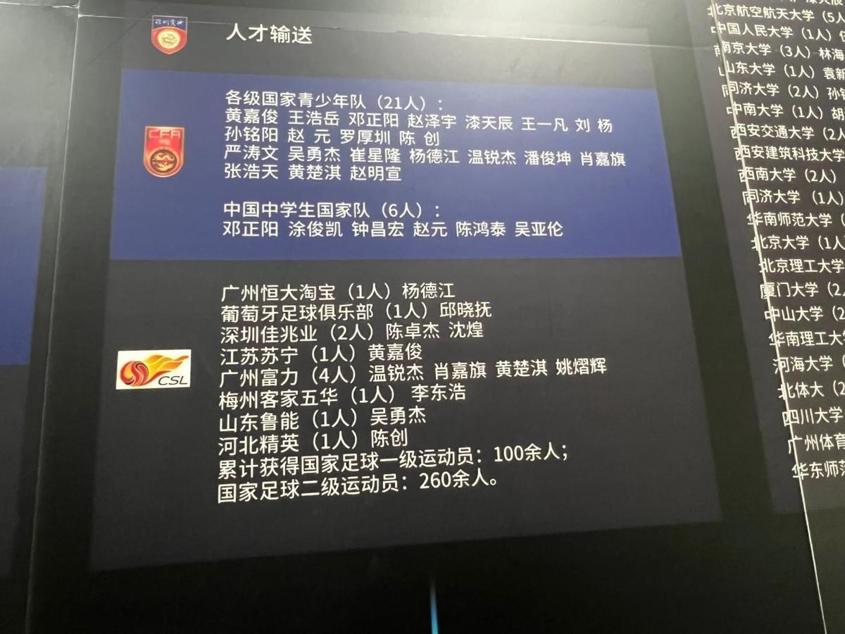 簡比學老師在學校領導的支持下,深圳實驗學校足球隊充分利用集團化辦學優勢,足球隊推動建立起從幼兒園到小學到初中再到高中一體化的足球青訓體系,制定了品德好、學習好、球技好的“新三好”足球隊員的培養標準,形成了體教結合的“一條龍”式的培養模式,先後爲國家青年隊、國家少年隊、中學生國家隊和各級別職業隊及梯隊輸送了40餘人。此外,累計32人考入了國家雙一流大學,其中不乏有清華、北大等頂尖綜合類院校。其中在廣州隊踢球的楊德江、曾在廣州城隊效力的肖嘉旗、黃楚淇都是深圳實驗學校培養出的隊員。