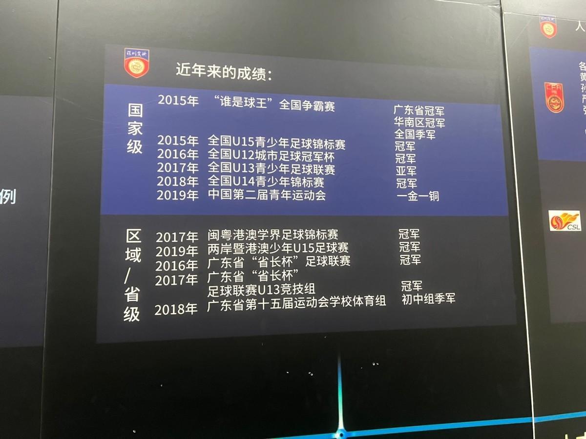 記者在深圳實驗學校足球隊宣傳欄上看到:近年來深實足球隊獲得了優異的成績,2015年獲得“誰是球王”全國爭霸賽全國季軍,2015年獲得全國U15全國青少年錦標賽冠軍,2016年獲得全國U12城市足球冠軍盃冠軍,2017年全國U13青少年錦標賽亞軍,2018年全國U14青少年錦標賽冠軍,2019年全國第二屆青年運動會獲得一金一銅。並且多次獲得廣東省省長杯足球聯賽冠軍。累計獲得國家足球一級運動員的有100多人,國家足球二級運動員有260餘人。2022年8月,作爲深圳實驗學校U13隊伍主教練的簡比謙帶領球隊獲得第一屆中國青少年足球聯賽男子初中年齡段U13組第八名,創造了當年來自校園足球隊伍的最好成績。