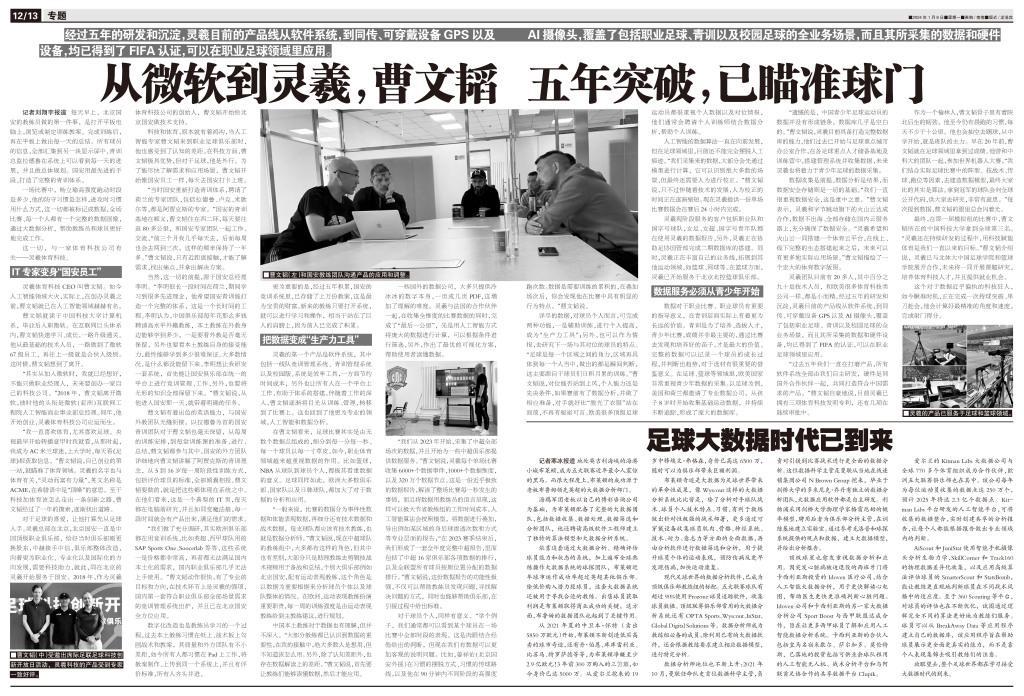 “其實從加入微軟時,我就已經想好,不能只做職業經理人,未來要創辦一家自己的科技公司。”2018年,曹文韜離開微軟,彼時他的頭銜是微軟(亞洲)互聯網工程院人工智能商業事業部總經理。同年,他開始創業,靈羲體育科技公司應運而生。