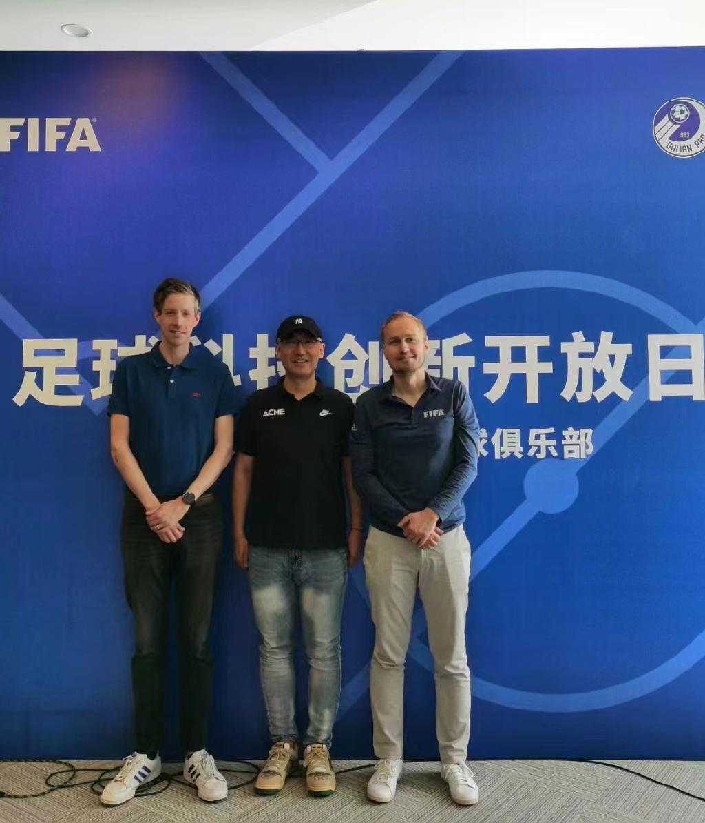 曹文韜(中)受邀出席國際足聯足球科技創新開放日活動,靈羲科技的產品受到專家一致好評。