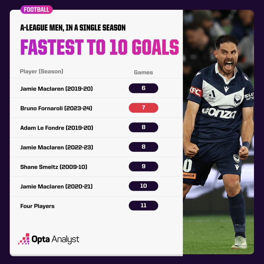 澳大利亞的烏拉圭裔球員福爾納羅利作爲B組代表入選,本賽季一度完成7場攻入10球的他,成爲了澳超史上射入10球所用場次第二少的前鋒(僅次於2019—20賽季6場10球的麥克拉倫),過去9場比賽,福爾納羅利還曾兩度上演大四喜。