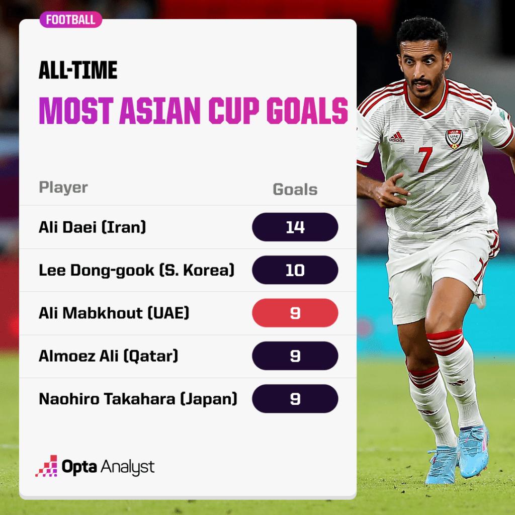 阿聯酋的馬卜胡特是阿聯酋國家隊和阿聯酋聯賽的得分王,他的216個進球在爲全球頂級聯賽阿拉伯球員射手榜上排名第三,僅次於索瑪(敘利亞)和哈姆達拉(摩洛哥),此外他和卡塔爾的阿勒莫茲·阿里亞洲盃上都已打進9球,是代伊亞洲盃進球紀錄(14球)的最強挑戰者,在亞洲盃射手榜上並列第三(第二是打進10球的李同國)。