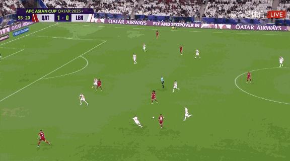 上半場結束前失球對黎巴嫩隊防線打擊很大,下半場主動出擊給了卡塔爾隊更多進攻空間。第56分鐘,左路瓦阿德送出傳中,阿勒莫茲擴大比分。