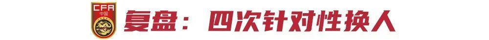 在國足和塔吉克斯坦的比賽中,揚科維奇進行了4次換人調整,調整的分別是後腰(徐新換王秋明)、左路(林良銘換戴偉浚)、前鋒(謝鵬飛換武磊、張玉寧換譚龍)。