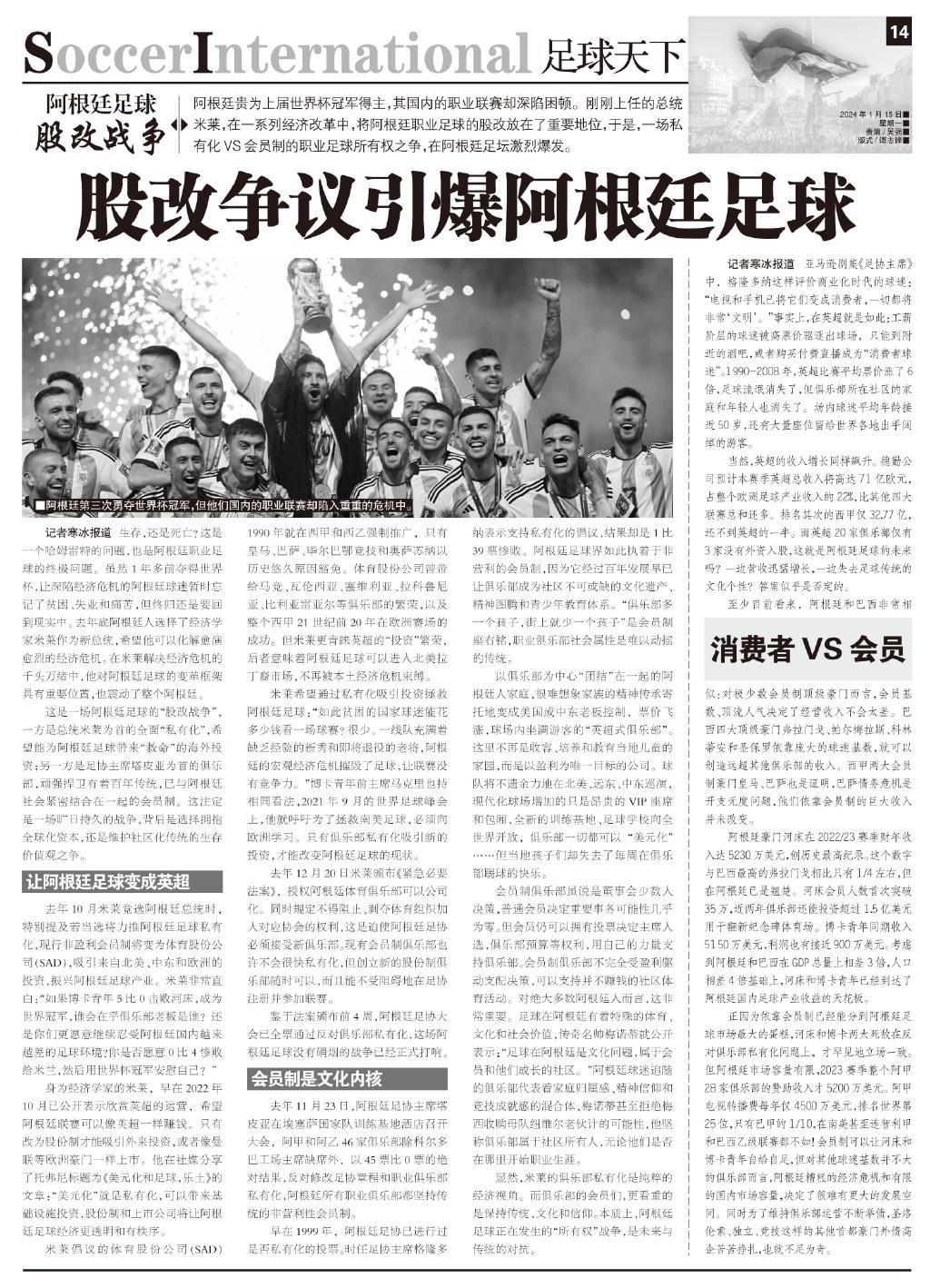 阿根廷貴爲上屆世界盃冠軍得主,其國內的職業聯賽卻深陷困頓。剛剛上任的總統米萊,在一系列經濟改革中,將阿根廷職業足球的股改放在了重要地位,於是,一場私有化VS會員制的職業足球所有權之爭,在阿根廷足壇激烈爆發。
