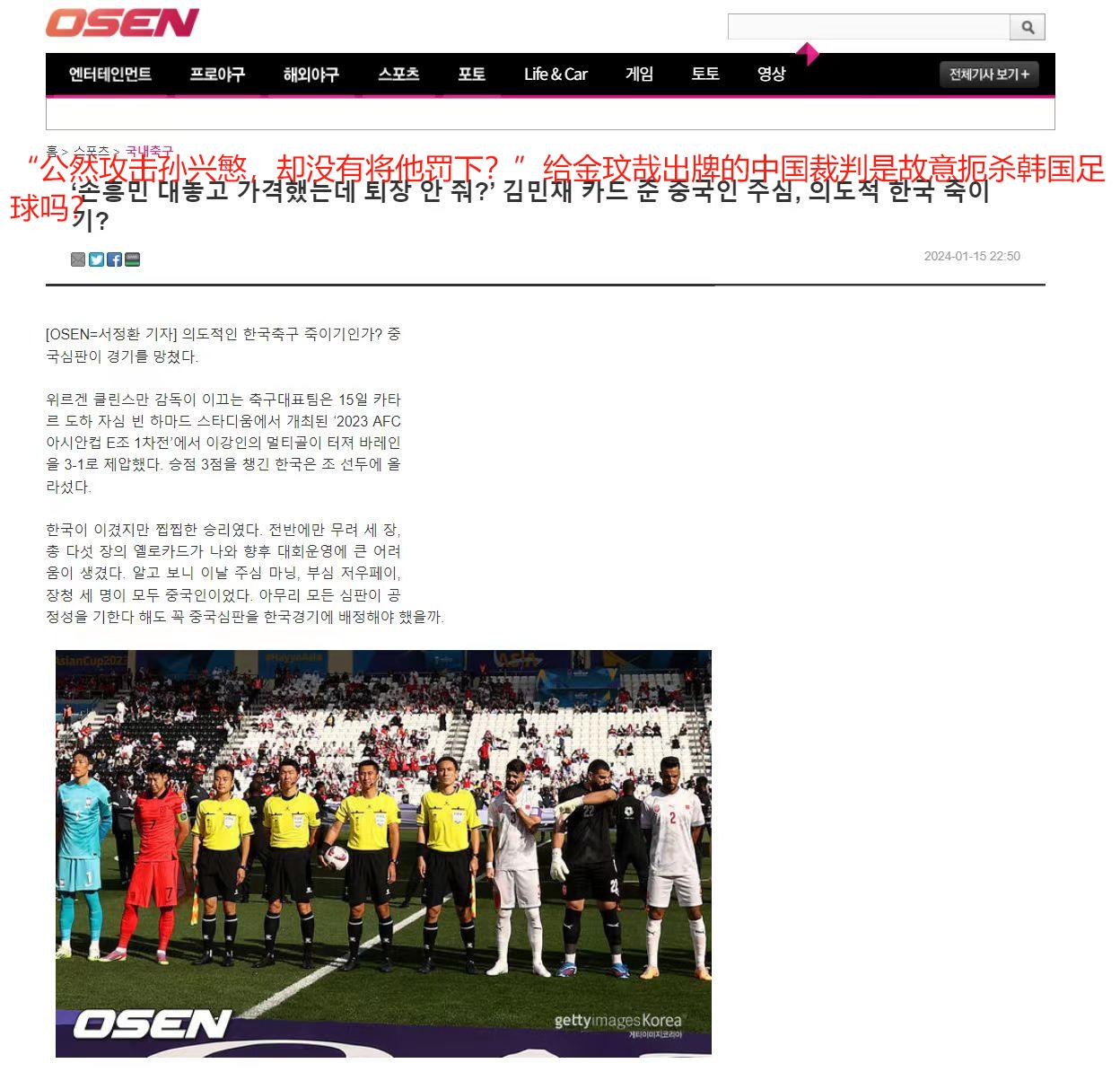 記者寒冰報道 3比1輕鬆擊敗巴林,韓國隊拿下亞洲盃開門紅,最近4屆亞洲盃首戰全勝。本場比賽成爲韓國隊1972年4比1大勝高棉隊後,亞洲盃首戰最大勝績,而那次韓國隊進入了決賽,但這一好兆頭沒讓韓國球迷完全滿意,儘管金玟哉參與兩球,李剛仁也梅開二度,但頭牌孫興慜未有斬獲成爲他們的最大遺憾,而全隊5人染黃也讓韓媒憂慮之餘生出不滿,甚至在賽後對當值中國主裁馬寧口誅筆伐。