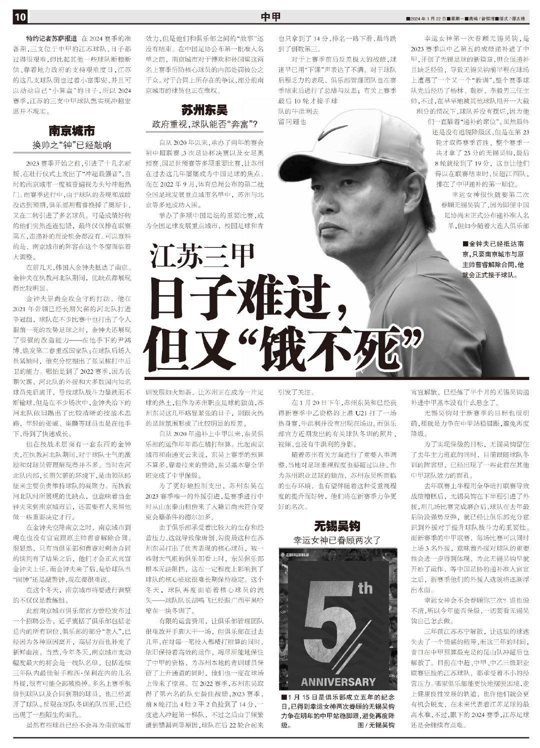 特約記者蘇薩報道 在2024賽季的準備期,三支位於中甲的江蘇球隊,日子都過得很艱難,但比起其他一些球隊斷糧斷供、靠着地方政府的支持艱難度日,江蘇的這幾支球隊倒也過着小富即安,並且可以動動自己“小算盤”的日子,所以2024賽季,江蘇的三支中甲球隊想實現衝超宏願並不現實。