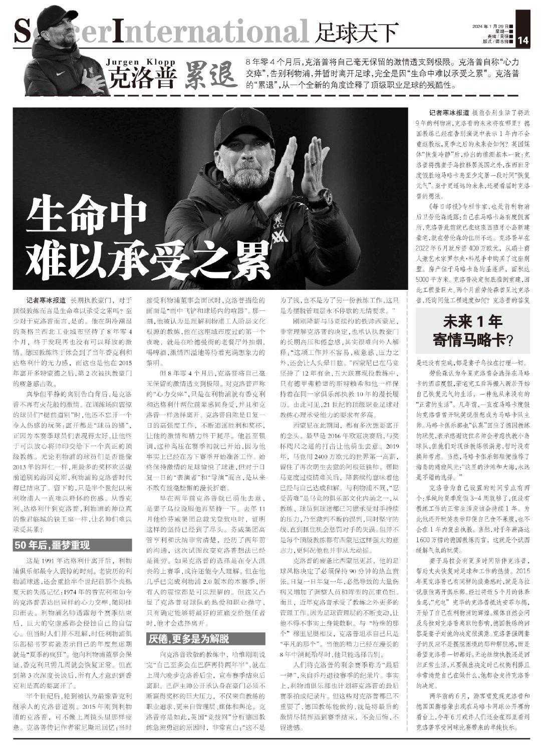 向克洛普致敬的教練中,哈維剛剛說完“自己至多會在巴薩再待兩年半”,就在上週六晚步克洛普後塵,宣佈賽季結束後離職。巴薩主帥公開承認身在豪門必須不斷贏得獎盃的巨大壓力,不僅來自教練的職業追求,更來自管理層、媒體和輿論。克洛普亦是如此,英國“競技網”分析德國教練急流勇退的原因時,非常直白:“這不是爲了錢,也不是爲了另一份教練工作,這只是爲擺脫管理層永不停歇的無情要求。”