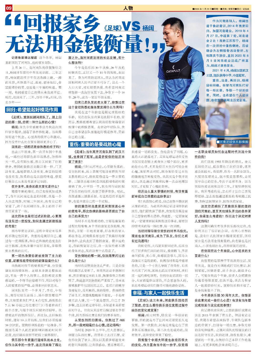 記者魯蜜清遠報道 這個冬季,楊闊重新回到了河南隊,他的家鄉球隊。