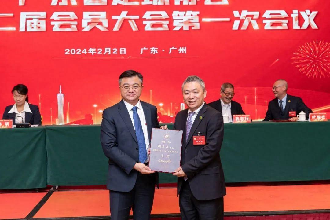 廣東省體育局局長崔劍向廣東省足協名譽主席葉細權、新一任廣東省足協主席謝昌晶頒發聘書。中國足球協會副祕書長羅釗向大會宣讀了中國足球協會的賀信。