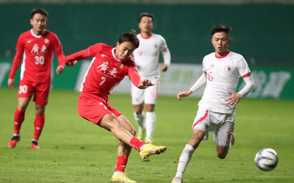 易邊再戰,第65分鐘,廣東隊球員在中國香港隊門前混戰,最終由廖均健倒地捅射破網,廣東隊以3比1領先中國香港隊,兩回合雙方以3比3戰平。進入30分鐘加時賽。雙方未能取得進球后比賽被拖進點球大戰。在點球大戰中,廣東隊先後由王世傑、尹聰耀、饒偉輝、廖均健攻破球門,4射全中。中國香港隊的陳凱柏、葉卓文則先後射失。