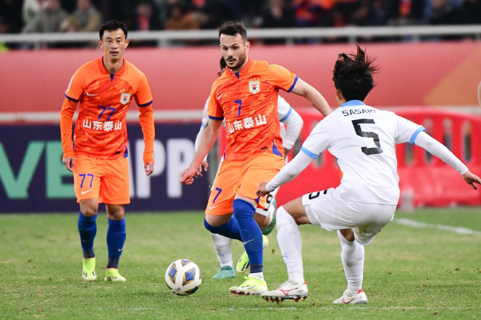衆所周知,泰山隊在後腰位置上略顯薄弱,但高壓戰術在很大程度上彌補了這一個缺點,實際上,即便是拉鋸戰,習慣回接拿球的克雷桑,加上卡扎伊什維利,大概率可以保證泰山隊中場的拿球能力。