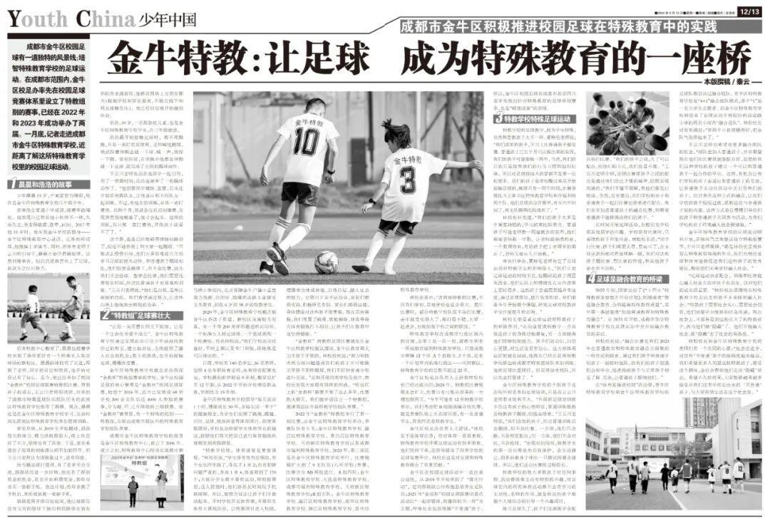 2022年初,國家出臺了《“十四五”特殊教育發展提升行動計劃》,明確要求“推進融合教育,全面提高特殊教育質量”,其中第一條就要求“加強普通教育和特殊教育融合”。從2023年開始,成都市部分特殊教育學校在足球運動中也開始融合教育的嘗試。